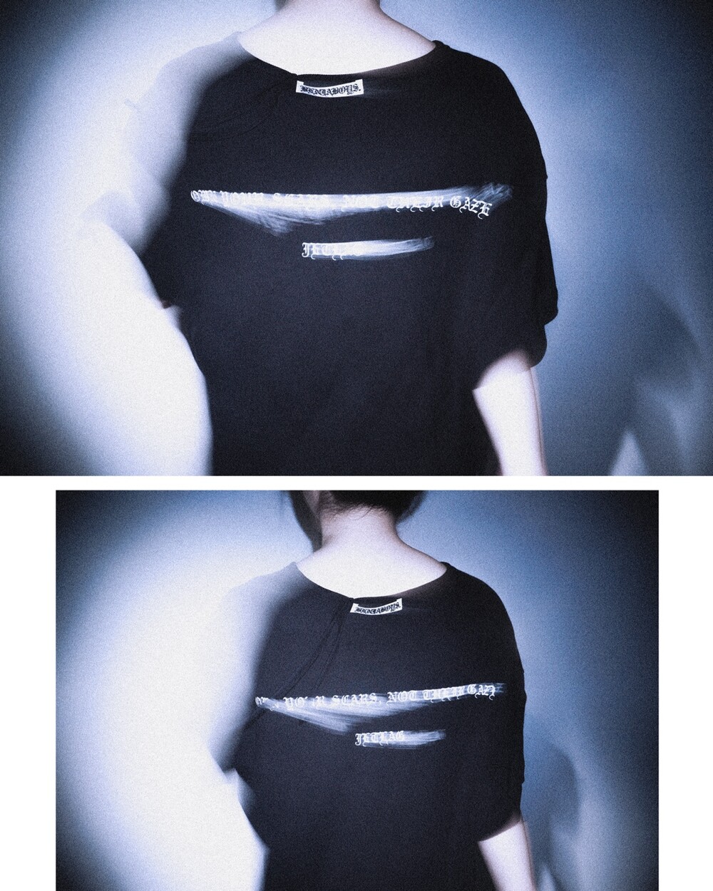 이 티셔츠는 움직임보다 정지의 잔상을 표현한다.